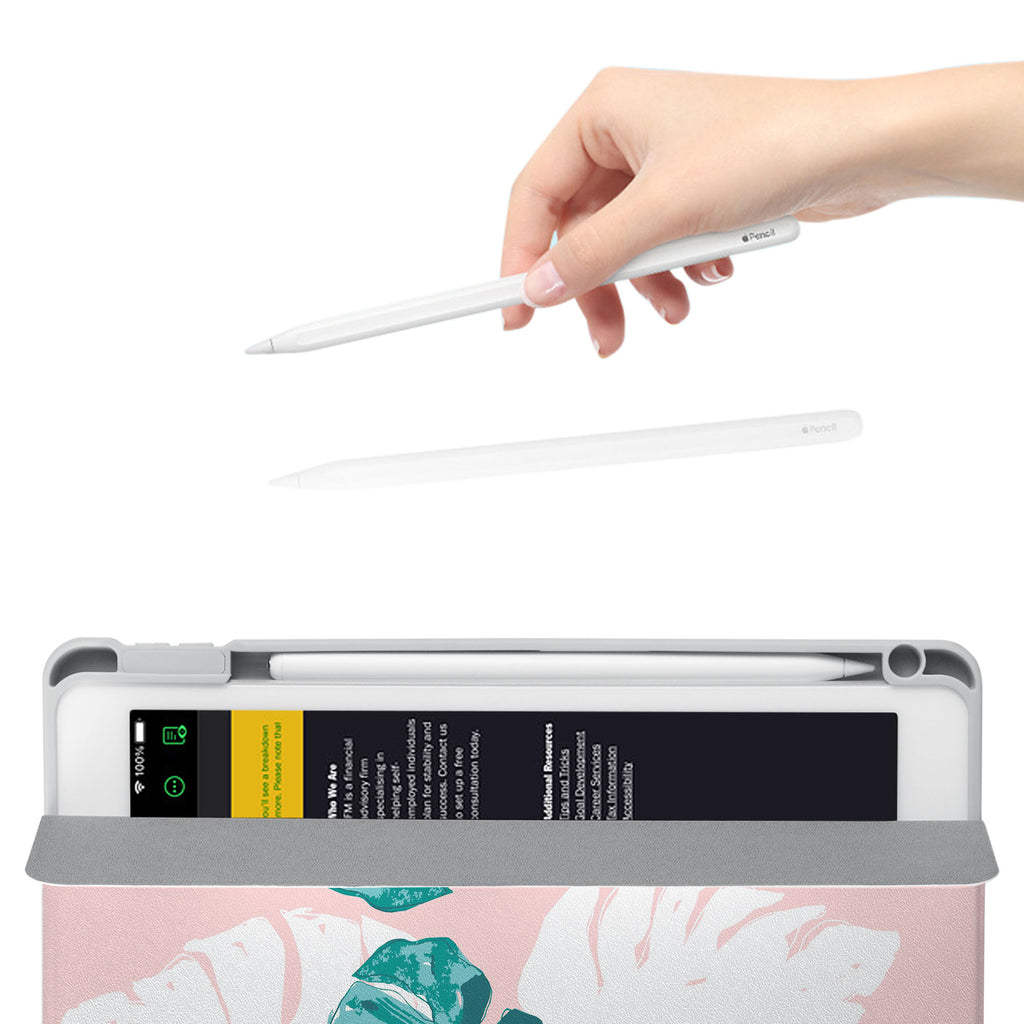 Vista Case iPad Premium Case with Pink Flower 2 Design has an integrated holder for Apple Pencil so you never have to leave your extra tech behind. - swap