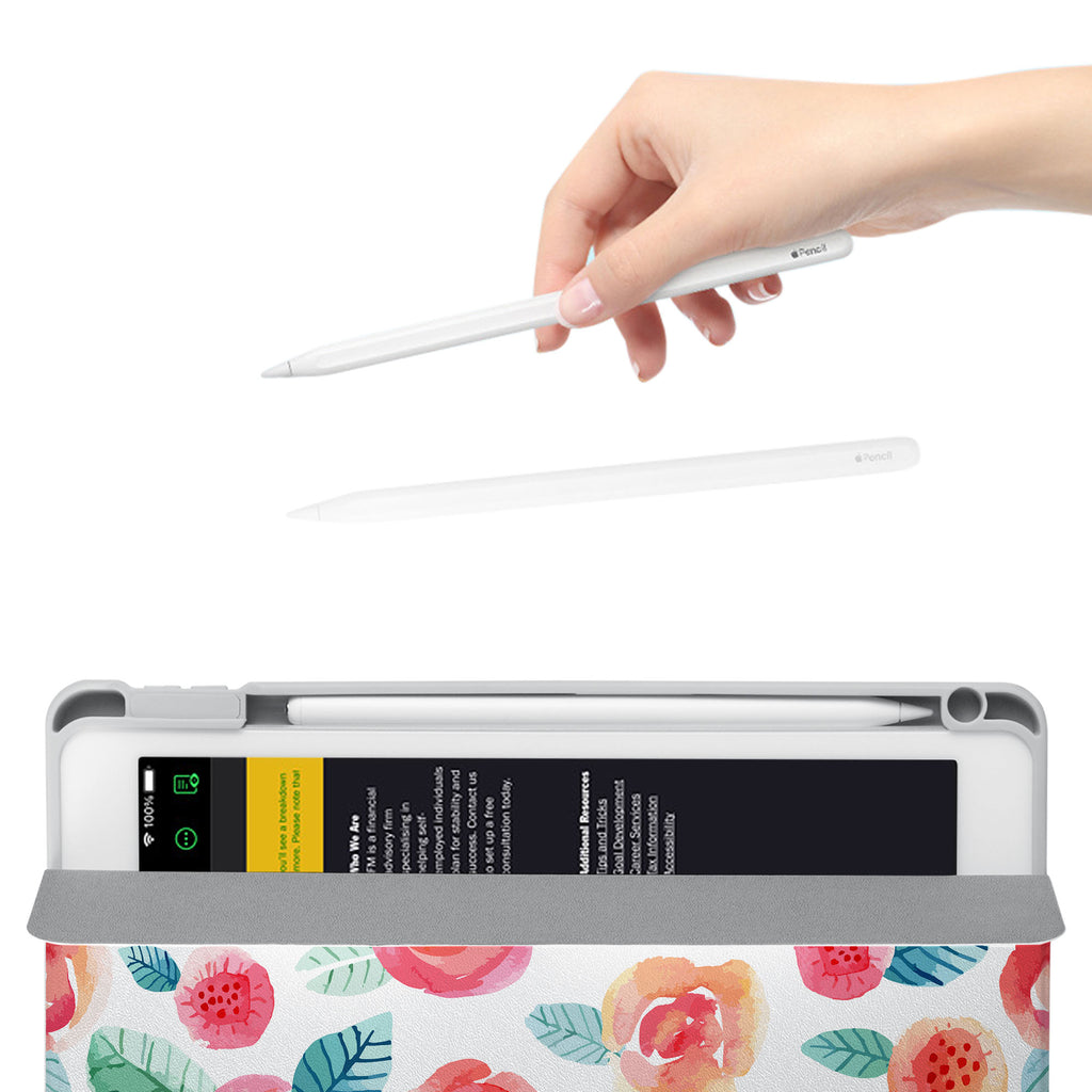 Vista Case iPad Premium Case with Rose Design has an integrated holder for Apple Pencil so you never have to leave your extra tech behind. - swap