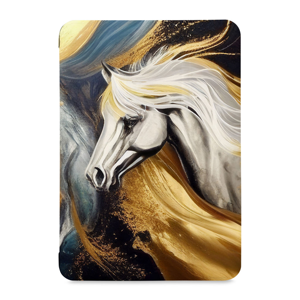It automatically wakes your iPad when opened and sends it to sleep when closed with Horses design