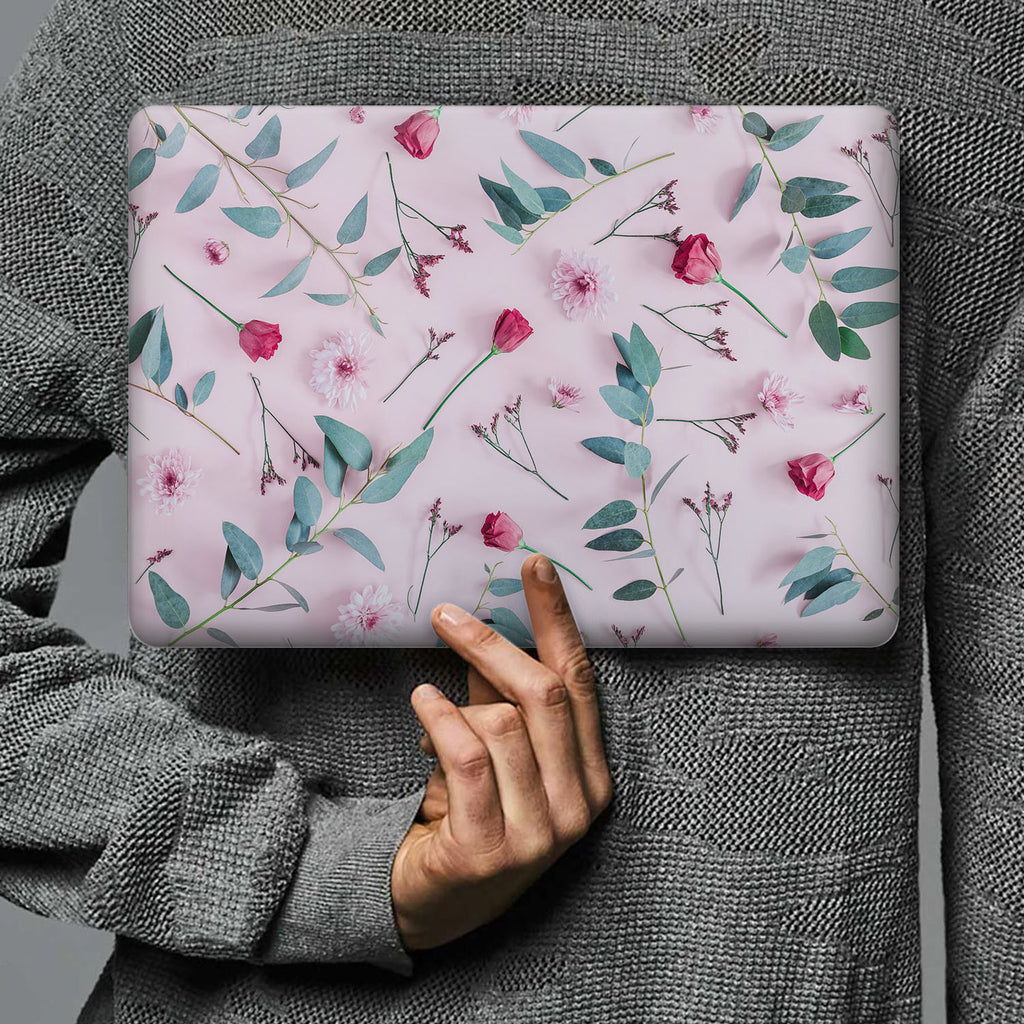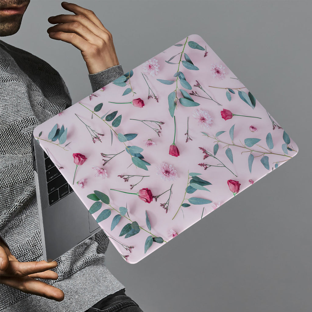 " A contemporary Personalized Macbook Case featuring delicate willowy stems of dainty leaves in soft pink and green. This pattern is a chic alternative to oversized floral prints; the slender trailing stems elegantly convey the beauty of nature and the joys of springtime. This is a tasteful design for lovers of fine art. "