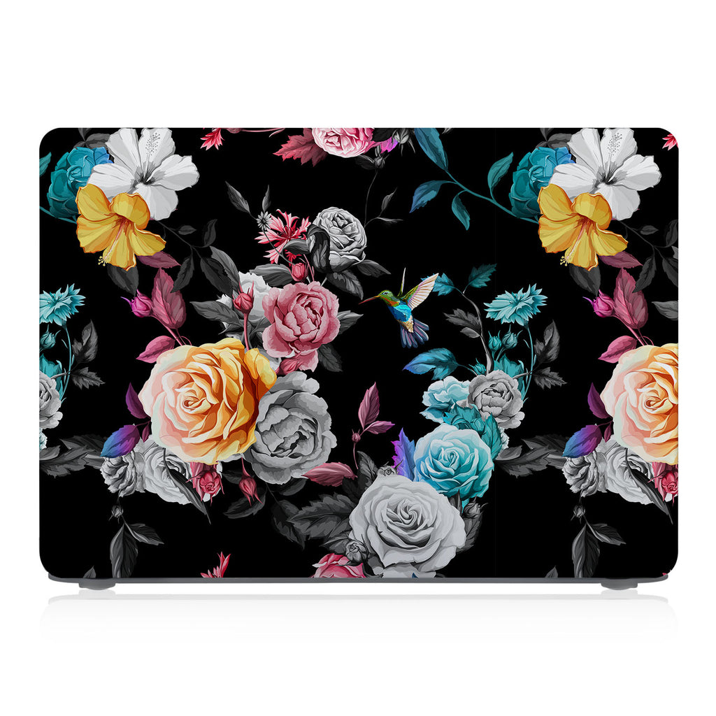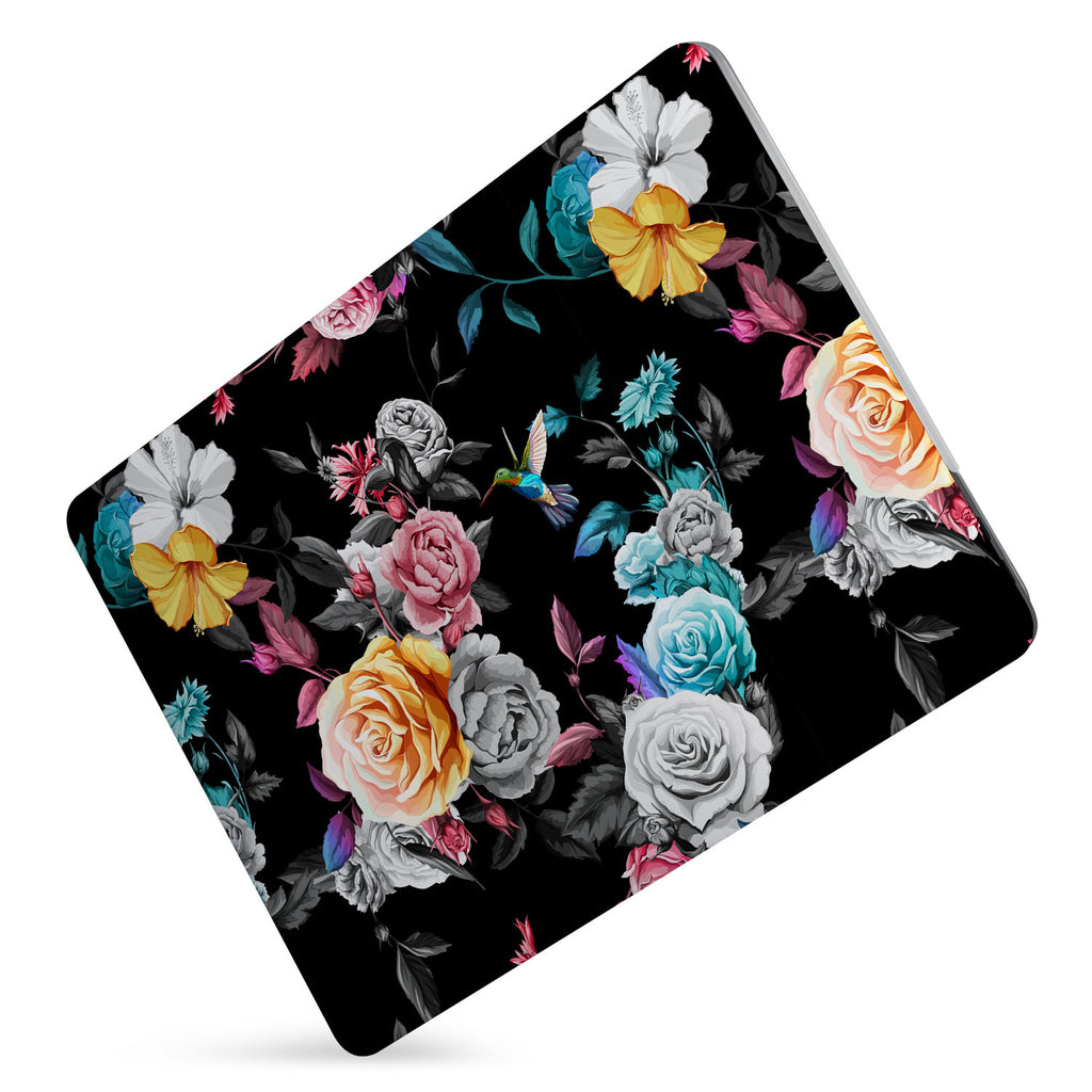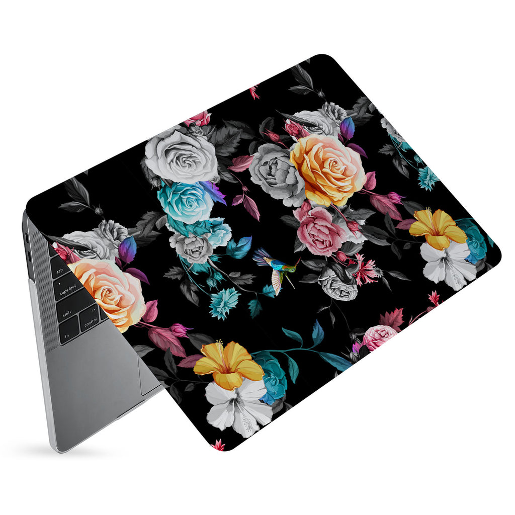 " Moody tones and oversized blooms make this Personalized Macbook Case a truly distinctive design. Plump roses are set against a jet black backdrop while a jewel-like hummingbird offsets the drama with a splash of vibrant color. This is a Baroque-inspired alternative to ditsy pastel florals. "