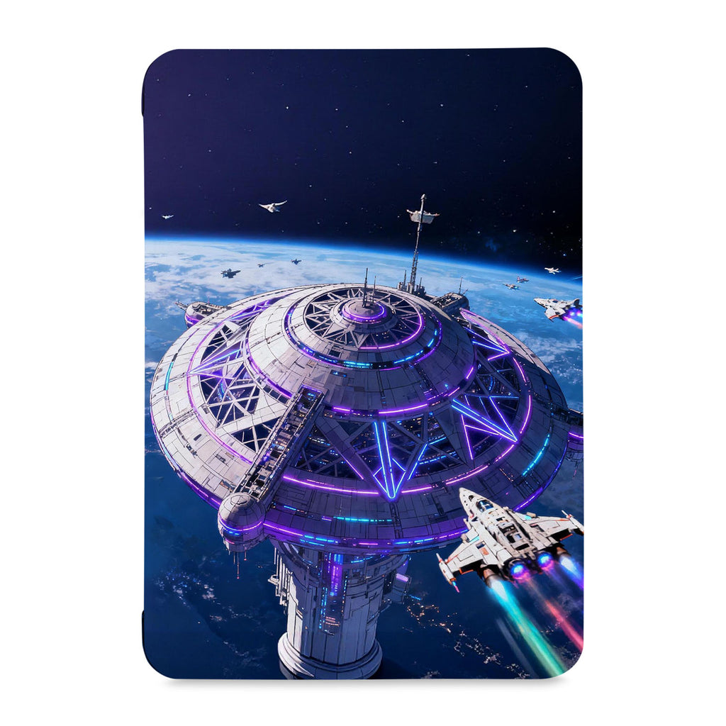 It automatically wakes your iPad when opened and sends it to sleep when closed with Universe design